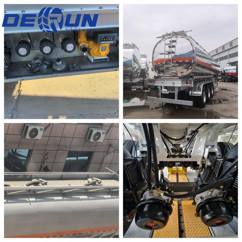Et Dern Tres-Axe Aluminium Alloy Oleum Tank Semi Trailer features A Tank Corpus ex Aluminium Alloy offering Lightweight constructione et corrosio resistentia. Internum anti-slosh laminis et compartments efficaciter supprimere liquorem motus, enhancing stabilitatem in translationem. In vertice instructa cum manhole operimentum et vapor recuperatio interface, cum imo features et pneumaticae subitis fregit valvae, in obsequio cum Argentine loading et unloading ordinationes. A album reflective coating reducit temperatus ortum a solis, obscuratis cibus evaporatio damna. Et cisternae cauda includit reservatur interface ad liquidum gradu sensoriis, facilius futura installation intelligentes vigilantia systems per customers.